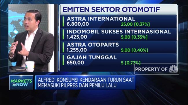 Analis menilai pilpres dan pemilu pada semester I-2019 menimbulkan banyak penundaan pembelian oleh pasar, diharapkan pada Oktober hingga Desember realisasi pembelian otomotif dapat meningkat dan target penjualan 1 juta kendaraan dapat tercapai. Selengkapnya simak dialog Daniel Wiguna dengan Kepala Riset Buana Capital Indonesia, Alfred Nainggolan dalam Power Lunch, CNBC Indonesia (Senin, 28/10/2019). https://www.cnbcindonesia.com/market/20191028141614-19-110672/analis-pasar-tunda-pembeliankinerja-industri-otomotif-turunBagikan Berita Ini