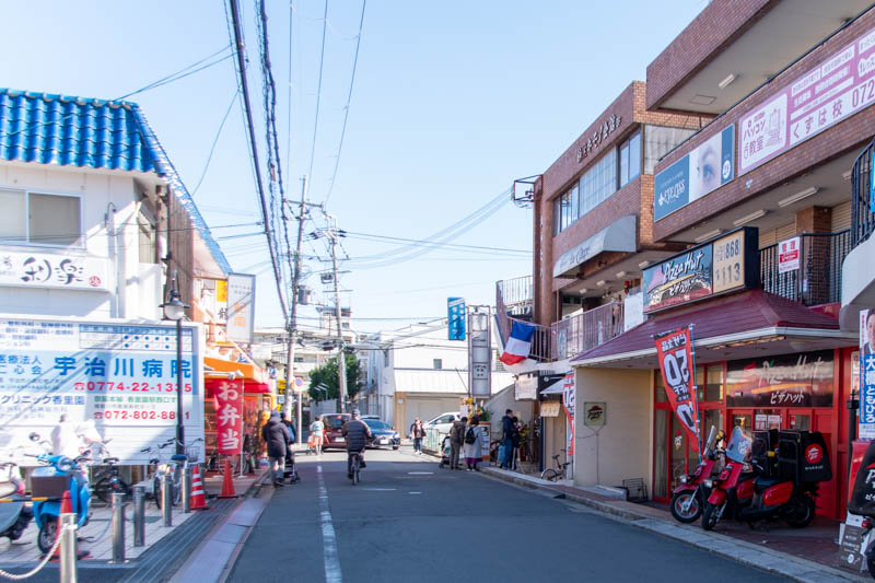 こっちに行き、右に曲がると府道18号線ぞいへ。近くにはくずはローズ幼稚園などがあります。