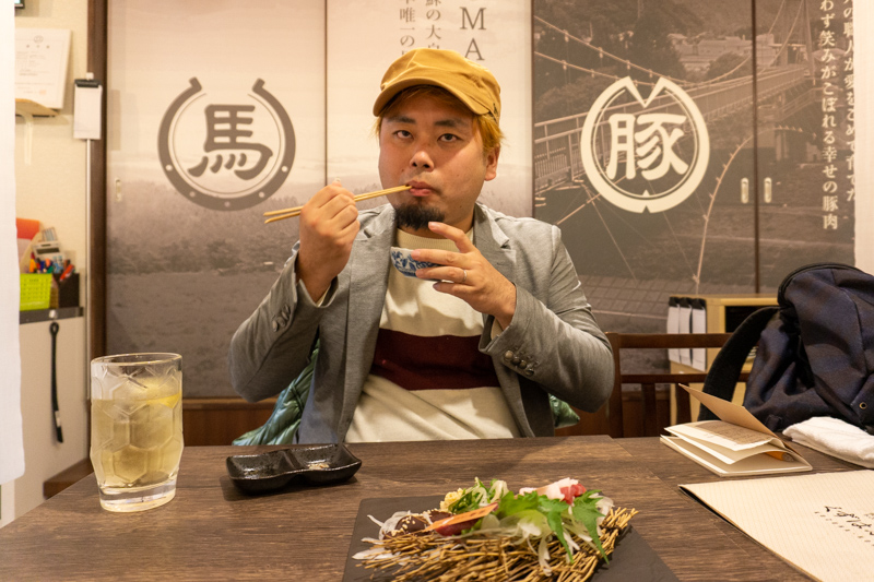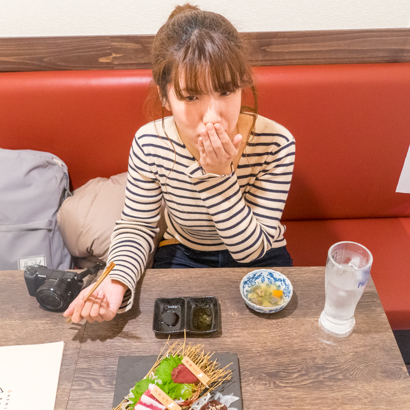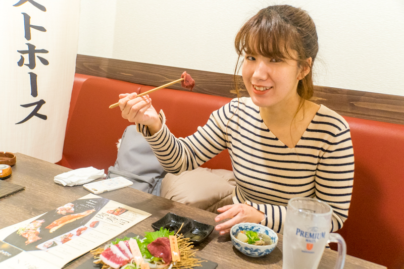 「確かに刺し身感ある食感!ビックリした、馬肉の赤身ってこんな味なんや〜!」