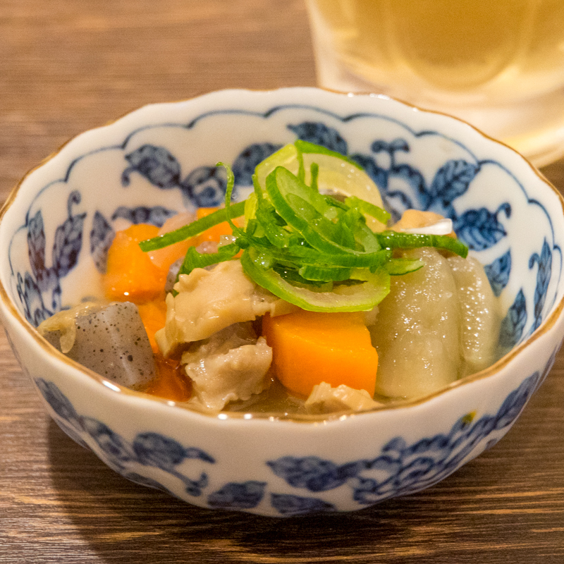 そんなわけでつきだしの煮物。これが地味においしい!1つ1つが細かくきざまれてるので、チビチビとお酒を飲みながら食べられるのも嬉しい。