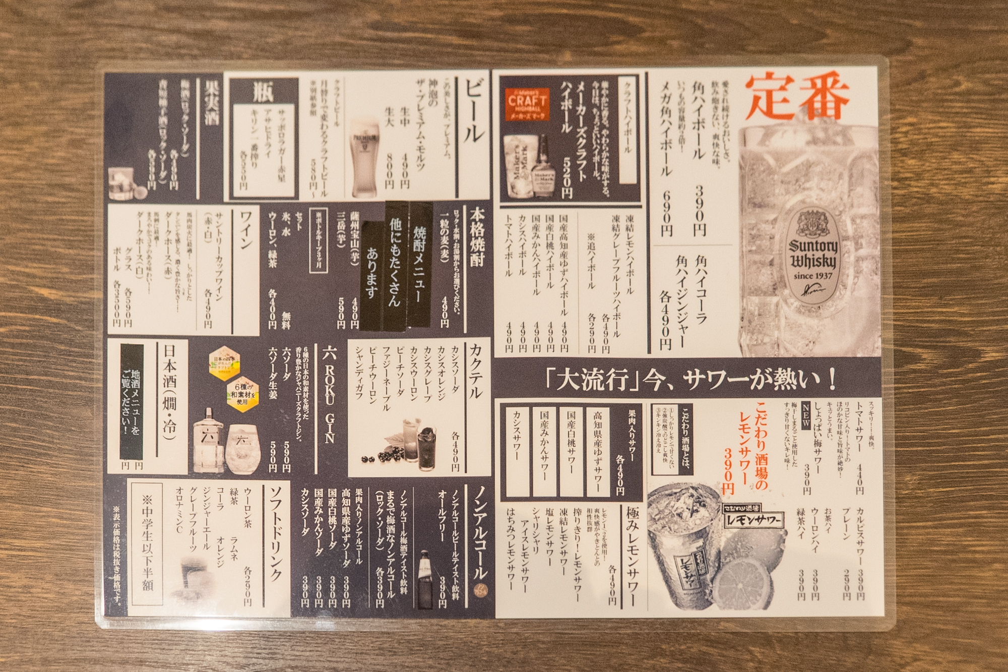 お店の方としては一番のオススメは「馬刺し階段盛り(2人前 1780円税別)」だそうなんですが、注文したら3000円オーバー確実だったので諦めました。誰や3000円のルール!(2度目)