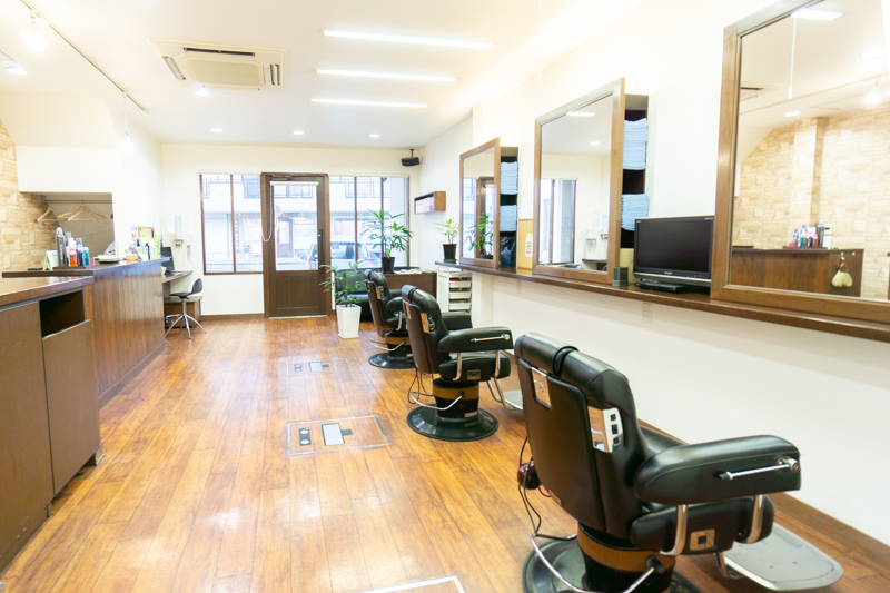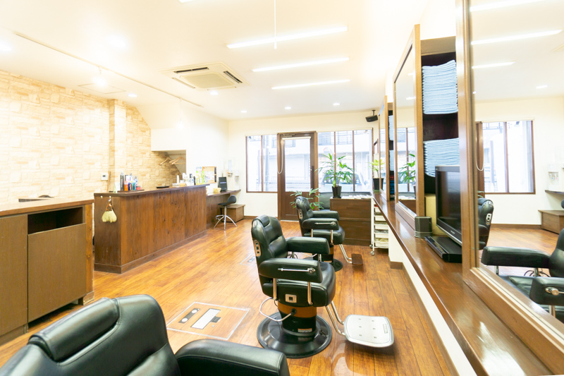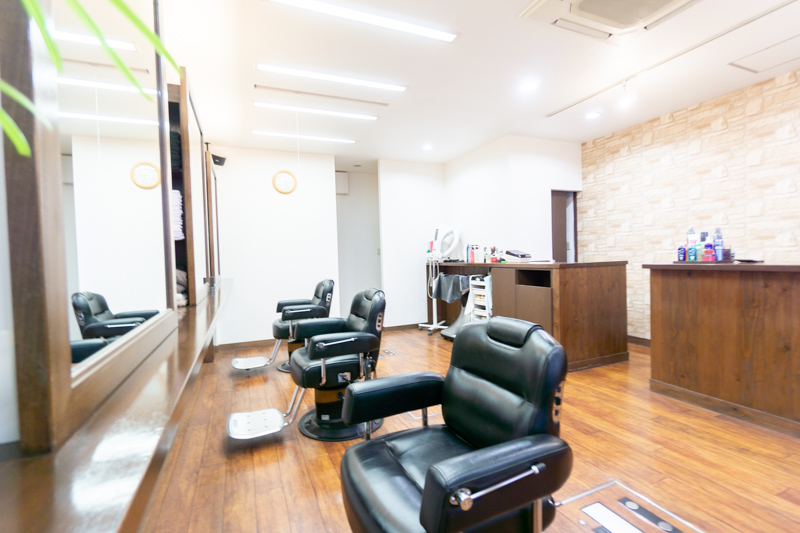 店内は男性のお客様が落ち着けるようにと全体的にシックな雰囲気に。