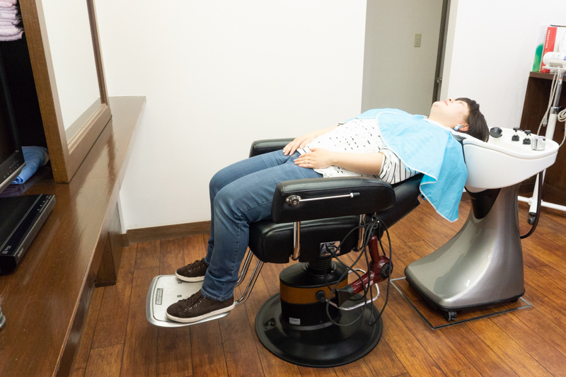 全席、このようにシャンプー台がはまるようになっているので移動しなくて良いんです。