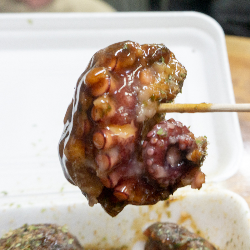 たこ焼きにたっぷりとかけた甘辛ソースの香りが食欲をそそります。