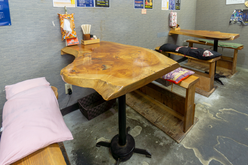 味のある木の天板がついているテーブル席が2卓。複数人での利用にも便利そう。