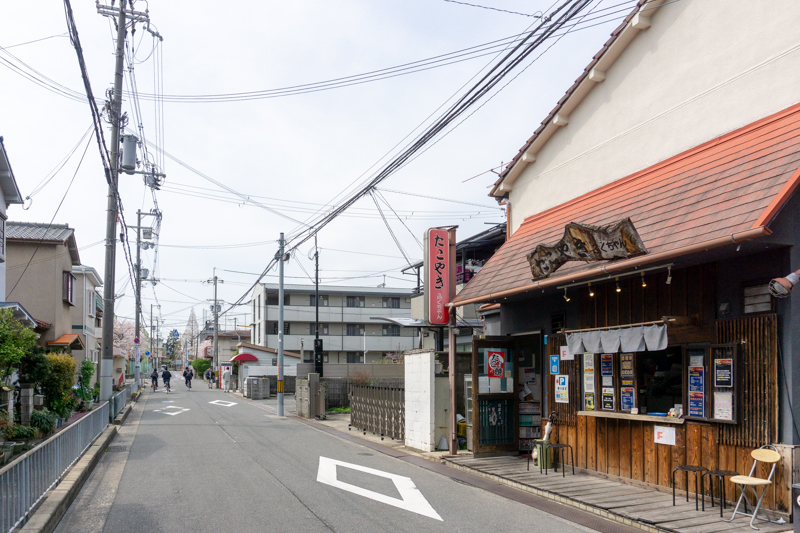 反対方向に進むと中宮平和ロードにでて、左に進むと関西外大中宮キャンパスの方へ。