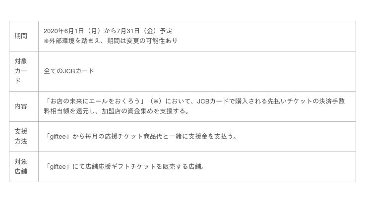 JCB、ギフティの店舗応援プロジェクトを通じた支援を2020年6月1日(月)から開始:時事ドットコム - 時事通信