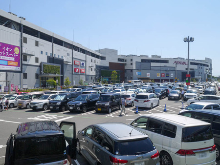 多くの買い物客が訪れ、広い駐車場が車で埋めつくされていました。