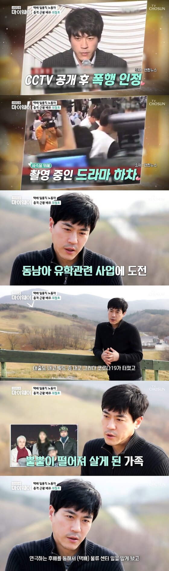최철호는 "그러다가 빚이 쌓이고, 집을 정리해야 하는 상황이 오더라"며 "그때부터 부모님은 요양원에 모시고 아내와 아이들은 처갓집에서 지내게 됐다"라고 밝혔다. 또한 "이후 물류센터에서 일했다"며 "돈을 벌어야겠다고 생각했다"고 털어놨다.